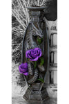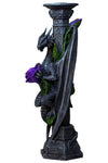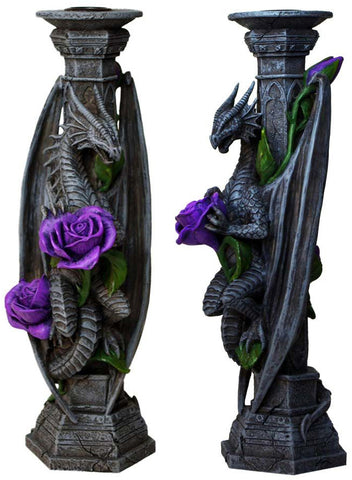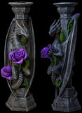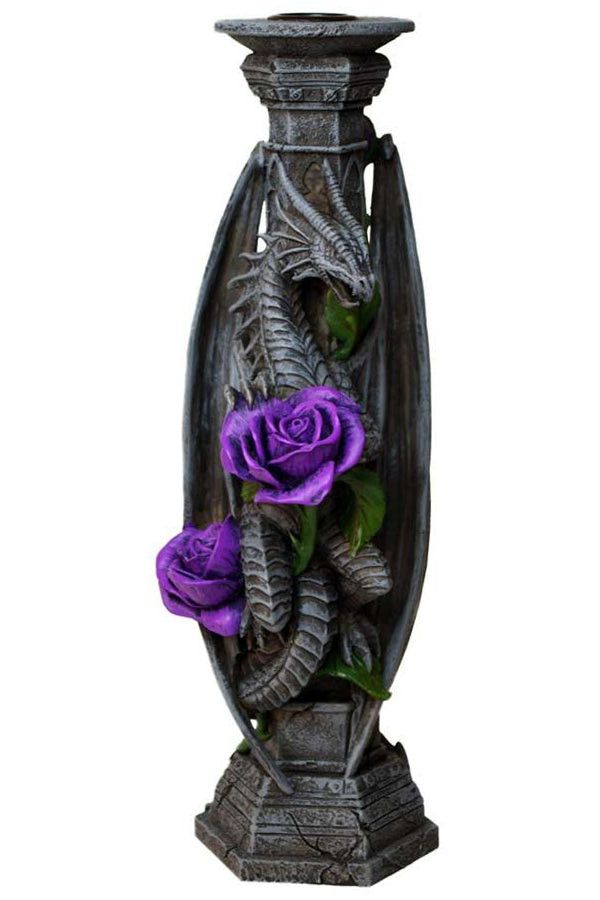 The Dragon Beauty Candle Stick is crafted from high-quality resin and meticulously hand-painted to bring Anne Stokes' vision to life. The design depicts a powerful, yet graceful, silver dragon entwined around a stone pillar adorned with delicate purple roses. The intricate details and lifelike scales showcase the artist's mastery and create a truly enchanting atmosphere.