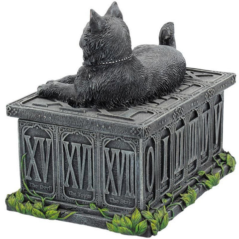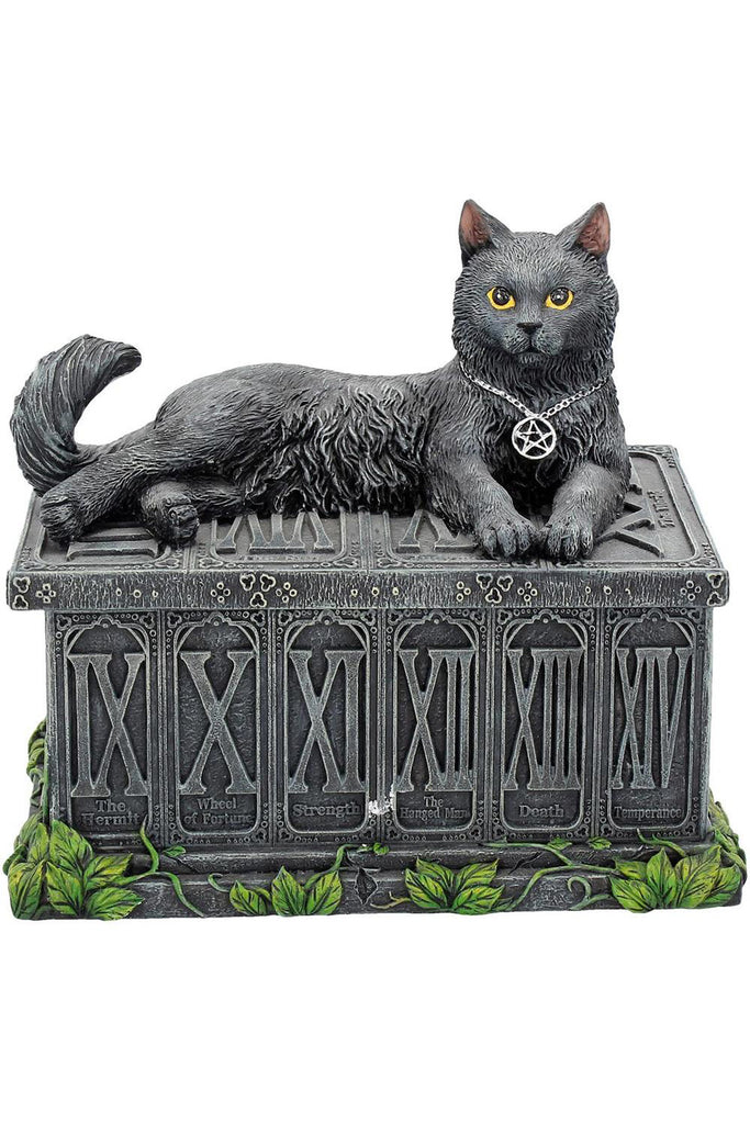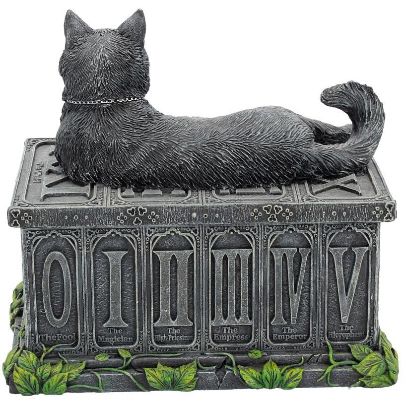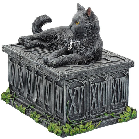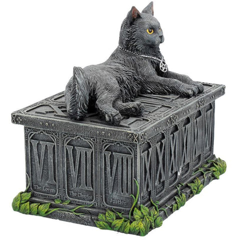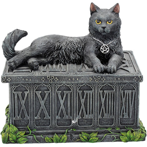 Beautifully crafted Tarot Card Holder topped with a black cat.