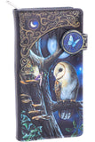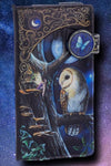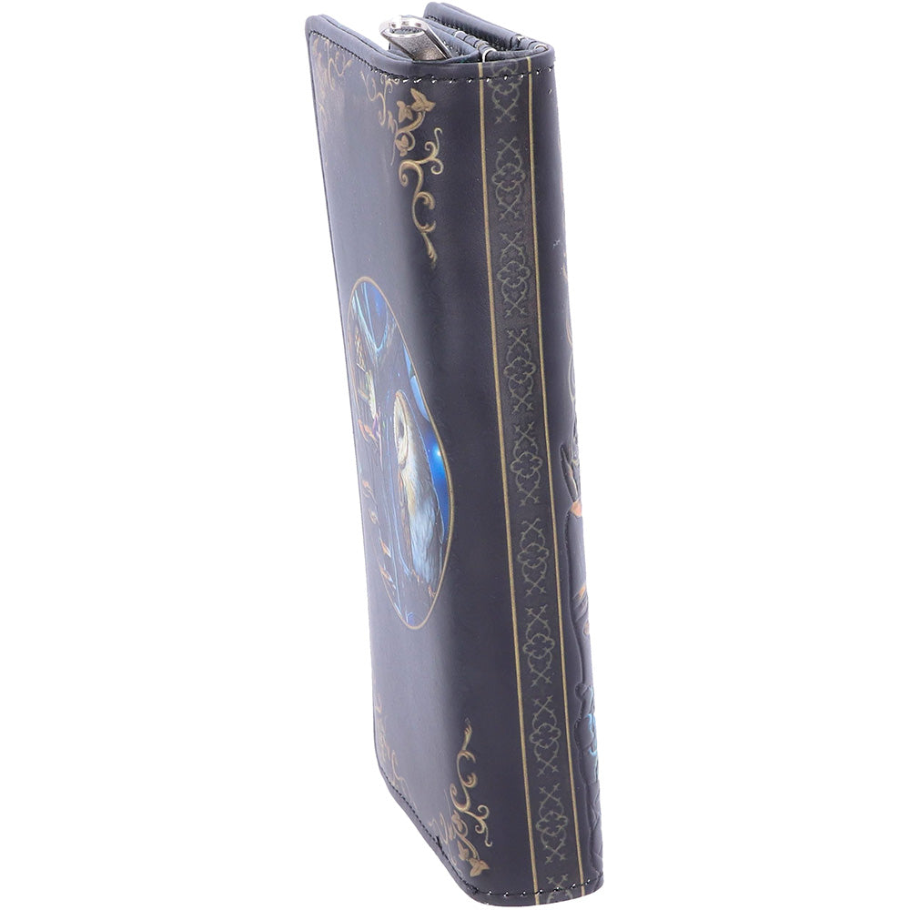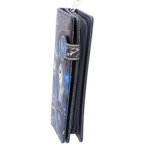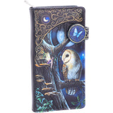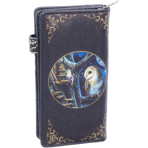 This embossed Purse is available exclusively through Nemesis Now. A large owl perches on a sturdy branch, talons gripping the bark as tight as they can, while a small fairy sits on the edge of a bark mushroom. A small fairy door can be seen behind her, inside glows and makes you feel warmth and homeliness. Wearing a purple dress she leans forward, her brunette hair sweeping over her shoulder. This pair makes the most unlikely companions, yet they stare lovingly into each other eyes underneath the midnight sky. The beautiful embossed detailing enhances the magic and creates a striking 3D effect while the large compartments make it a wonderfully practical piece.