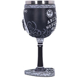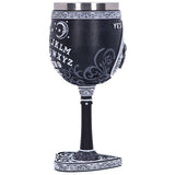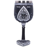 Spirit boards have long been one of the most powerful occult tools there is. Encompassing the black Goblet is our own spirit board design, decorated with white baroque detailing on the stem, base and rim. In the center the alphabet is marked out in an arc. The design also includes numbers 0 to 9 and the words YES and NO, as well as a warning to use with caution – the power of the spirit world is not something to take lightly. Cast in the finest resin before being painstakingly hand-painted, this Goblet will make the perfect tabletop accompaniment to any séance.