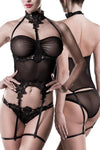 Grey Velvet Mesh Lingerie Set - Ignite Your Desire