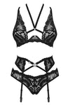 This three-piece set, featuring a bra, suspender belt, and briefs, is a true statement of confident style, crafted from beautiful lace to create a look that is both captivating and incredibly comfortable.