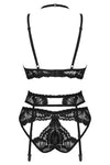 Thoughtful & Alluring Details: The bra includes decorative, stretchy straps in the cleavage area that create a modern and daring look. The suspender belt features similar stretchy straps and a decorative fastener at the front, while the briefs have a fancy design that beautifully emphasizes the buttocks.