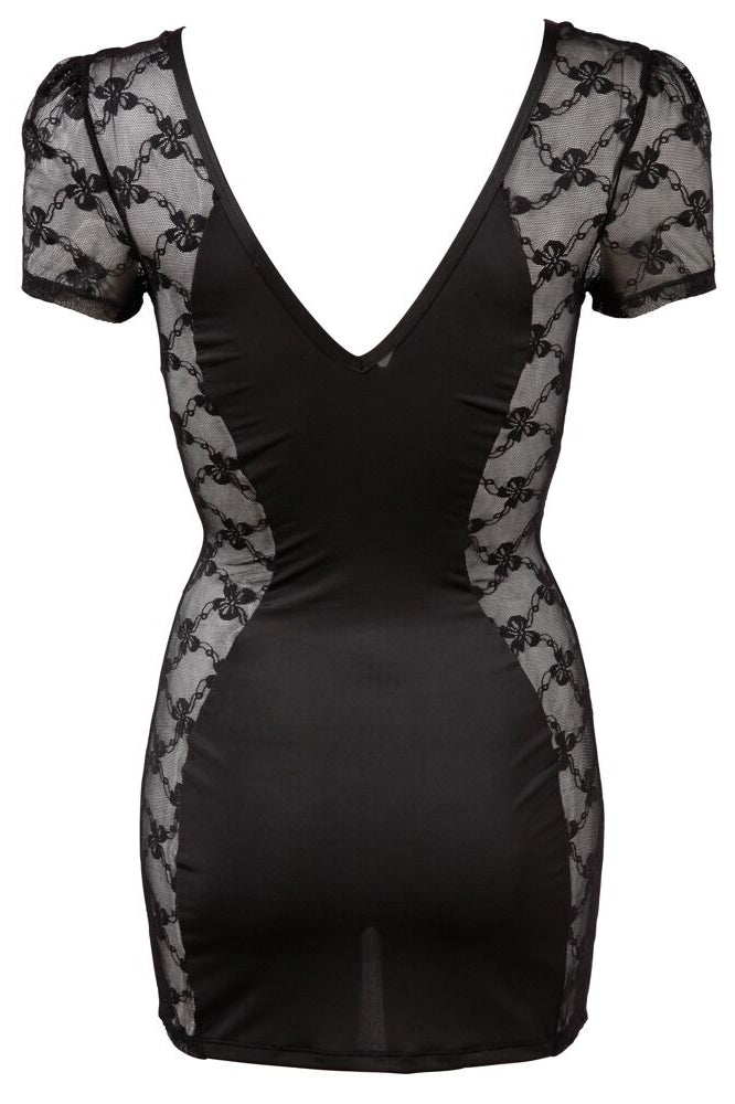This Cottelli Party Dress is a modern take on the classic little black dress, blending a curve-hugging silhouette with sheer lace details for a captivating look. Designed to be tight-fitting and transparent, this dress is guaranteed to turn heads at any party or special occasion.