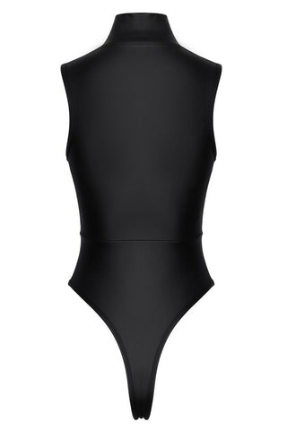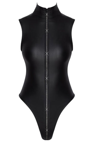 Unique Design & Eye-Catching Detail: The body is constructed from high-quality, stretchy black matte look material ( polyester, spandex, polyurethane coating) that hugs your curves tightly yet comfortably. The centerpiece is the long zip with sparkly rhinestones, which travels dramatically from the elegant stand-up collar right down and over the crotch. This not only provides a high-impact aesthetic but also offers customizable access.