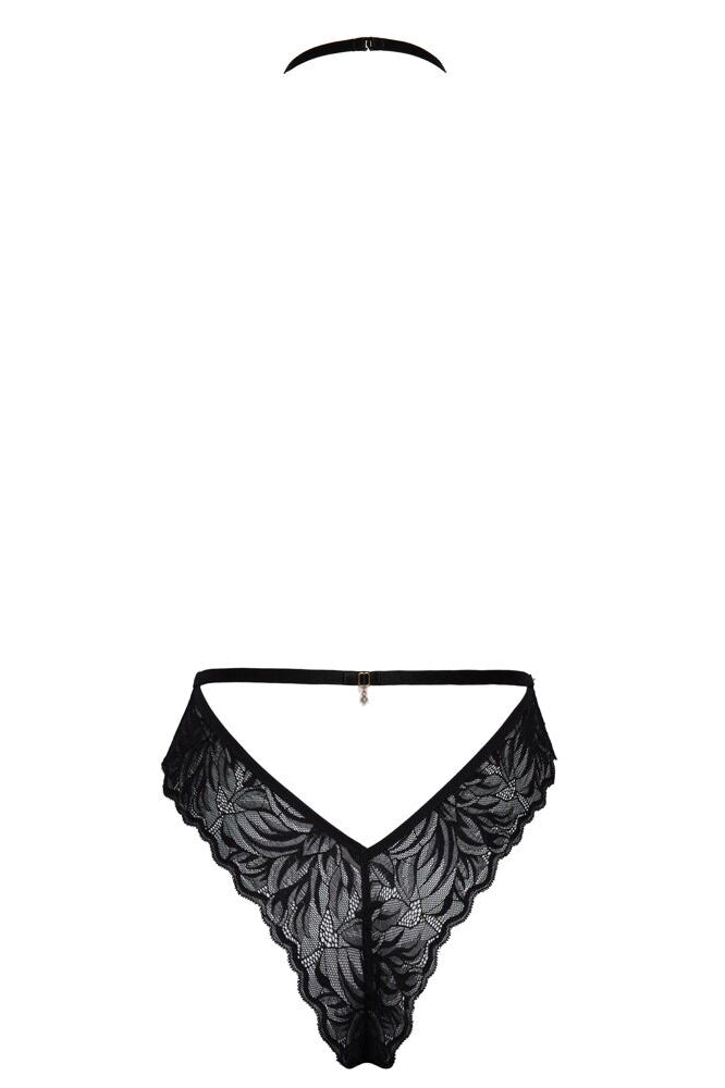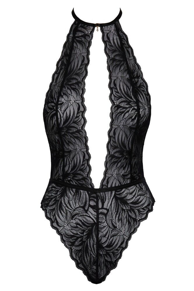 The Kissable Black Lace Body is an exclusive statement piece designed for maximum allure and comfortable wear. Crafted entirely from fine, delicate black lace, this halterneck body features a dramatic silhouette and sparkling details that make it truly unique.