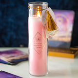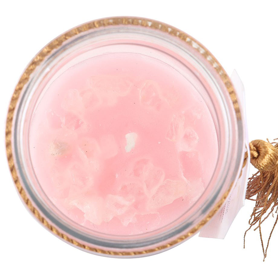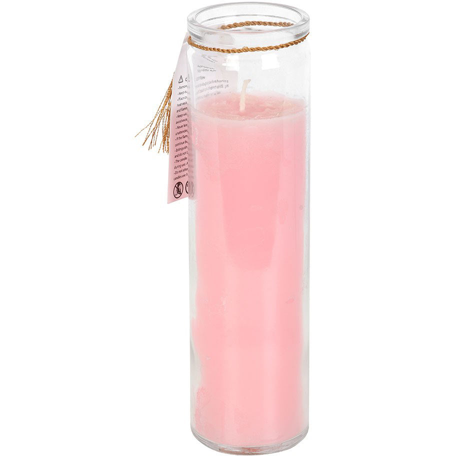 Mystic Rose Tube Candle with Rose Quartz Crystals.