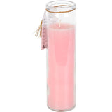 Inspired by traditional 7-day prayer candles, this tube candle comes in a beautiful mystical rose fragrance. Accented with gold. Let your inner light shine' text and rose quartz crystal chips, this candle promotes self-love and confidence. Crystals will release from wax with use and can be reused for a multitude of spiritual purposes. Paraffin wax. Approximately 50 hours of burn time.