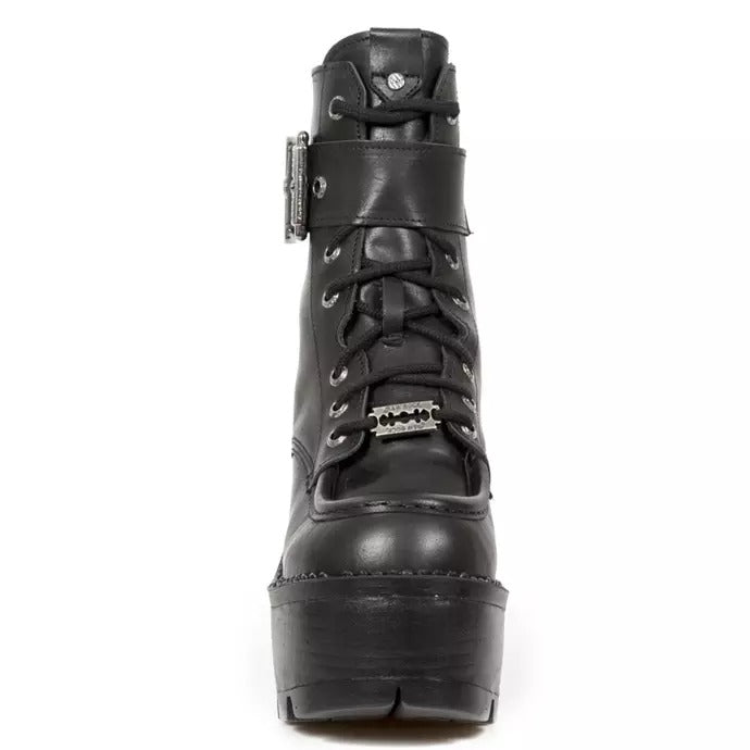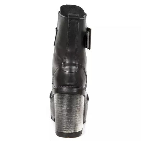 New Rock Seventy Ladies Ankle Boots M.SEVE27-S1 - Leather. Decorated with a single boot strap and large buckle. Seventy heel and platform sole. Part of the Seventy Collection.