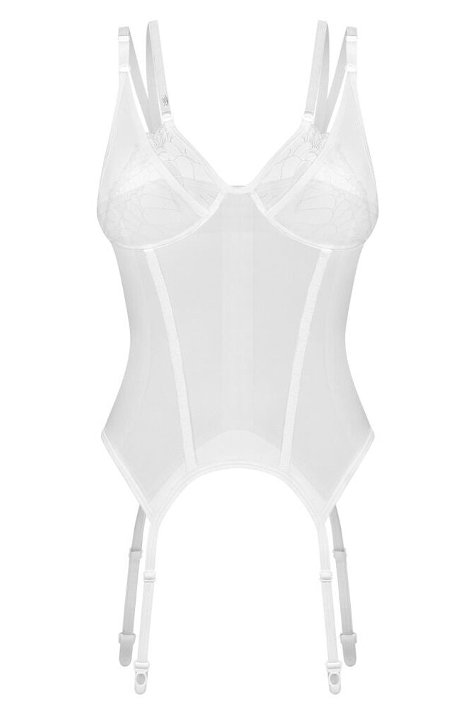 The Obsessive Arrowel White Basque is designed to combine striking sensuality with exceptional comfort, making it an exquisite addition to any intimate wardrobe. This piece is more than just lingerie; it's an experience in refined self-expression.