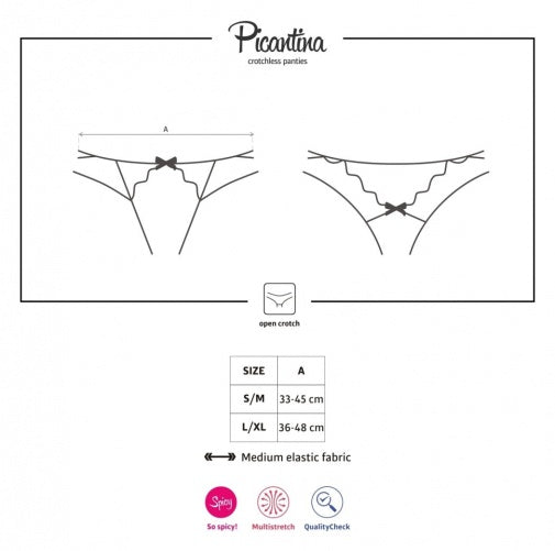 Ignite the passion with the Obsessive Picantina Crotchless Thong. Designed by the renowned experts at Obsessive in Poland, this alluring piece is more than just underwear—it's the perfect spicy warm-up and an incredible gift to guarantee a hot, memorable evening. Crafted especially for those who love to tempt and tease, the Picantina thong is guaranteed to add irresistible allure to your lingerie collection.