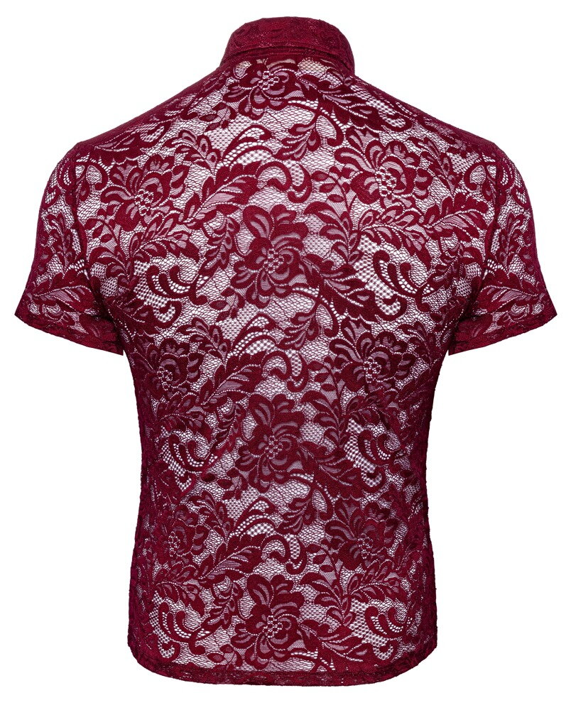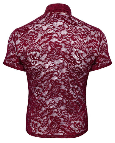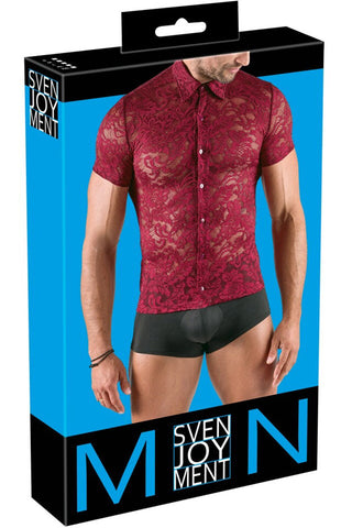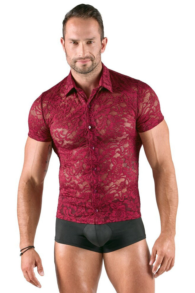 Transparent shirt in a beautiful lace look! The emphasising shirt from Svenjoyment has short sleeves, a collar and a row of buttons that go all the way down the front. The shirt is made entirely out of dark red floral lace, which is soft and stretchy for a very comfortable fit.