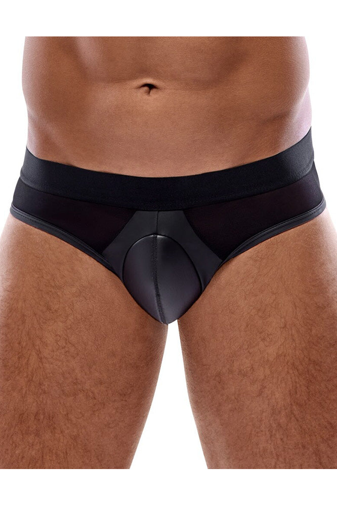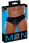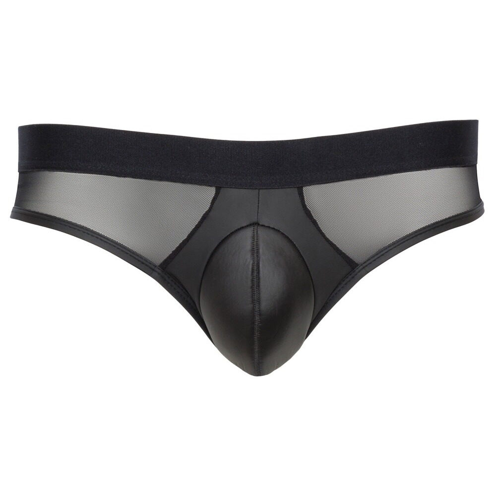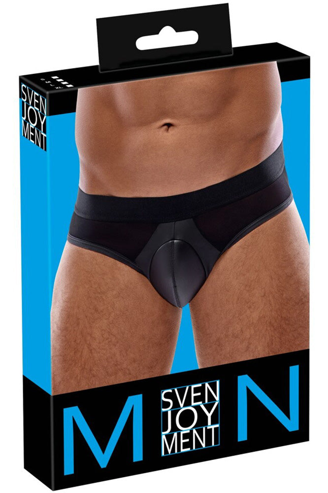 Full presence in a stylish mix of materials! Briefs from Svenjoyment with a a padded pouch for a striking front bulge. Noble black matte look with mesh inserts at the front. Soft and elastic all round with a wide woven elastic waistband for maximum comfort.