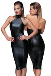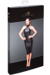 Crafted from luxurious, stretchy power wetlook in a sleek matte black, this dress hugs your curves like a second skin. The high neckline adds a touch of sophistication, while the fitted waist accentuates your feminine silhouette. The knee-length cut strikes the perfect balance between daring and elegant.