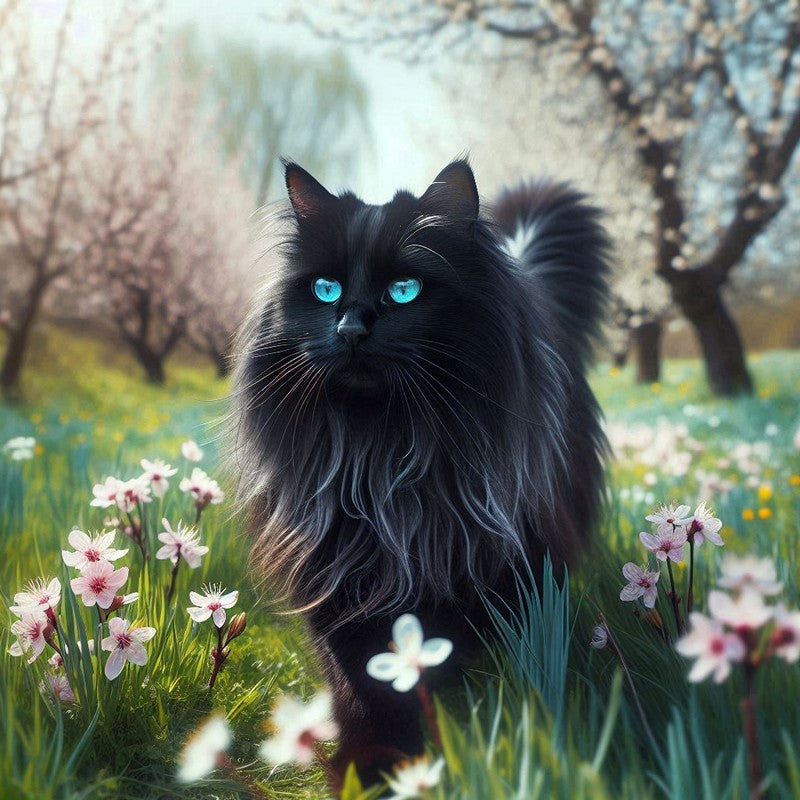 Step into a world of enchantment with our "Mystical Guardian" Long-Haired Black Cat collection. Inspired by the ethereal beauty of a magnificent long-haired black cat with striking blue eyes, this collection embodies the spirit of tranquility and untamed beauty. Each product is a tribute to the silent strength and captivating allure of nature's most enigmatic creatures.