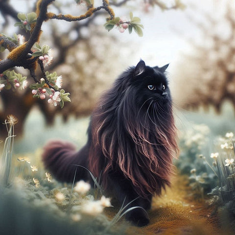 Our Orchard Wanderer Collection is a tribute to the quiet, magical moments found in nature. Drawing inspiration from a majestic, long-haired black cat with its captivating auburn-tinted fur and piercing blue eyes, this is for those who seek to bring the tranquility and mystery of a fairytale into their home.