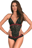 This teddy is a true statement of confident style, combining a timeless black lace with a bold, contrasting velvet detail to create a look that is both captivating and incredibly comfortable.