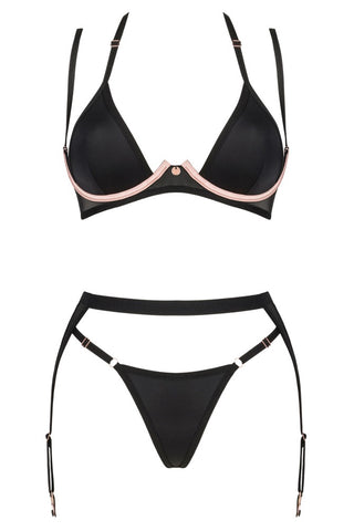 This set is a testament to meticulous design, offering a unique and unforgettable collection that prioritizes both comfort and a captivating style. Please note, stockings are not included with this set. To maintain the quality and feel of this delicate set, we recommend hand washing in cold water with a mild detergent and laying flat to dry. For more in-depth advice on caring for your lingerie, please refer to our full Lingerie Care Guide.
