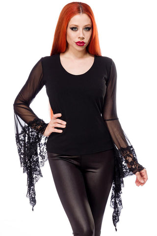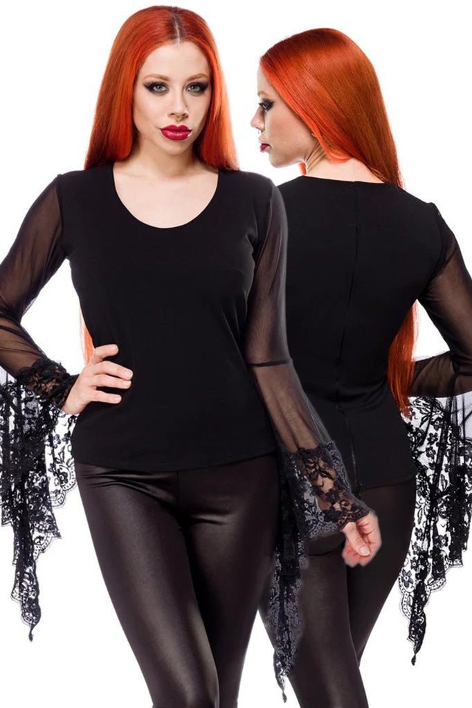 Ocultica Lace Trumpet Sleeve Top: Gothic Elegance Redefined