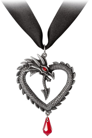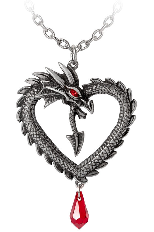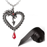 Express the magic of love and mystique with our exquisite Dragon Pendant, a captivating blend of artistry and passion. Crafted in fine English pewter with meticulous attention to detail. The Siam red eye of the dragon glimmers with intensity, drawing you in and captivating all of those that see it!