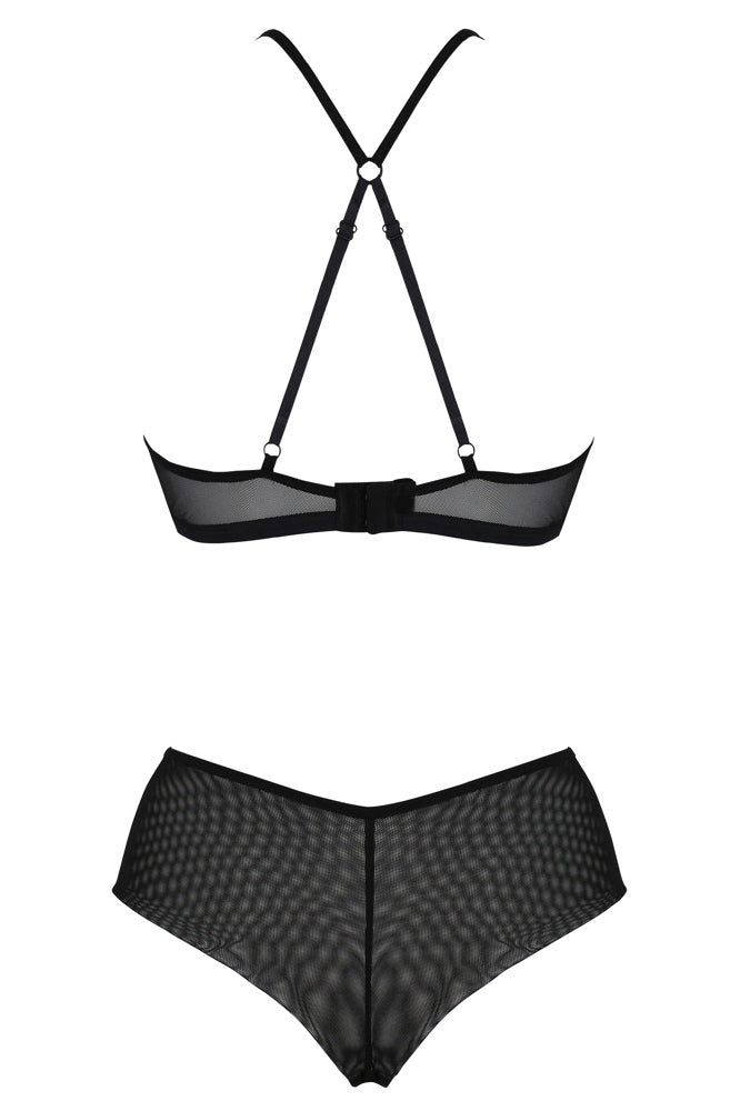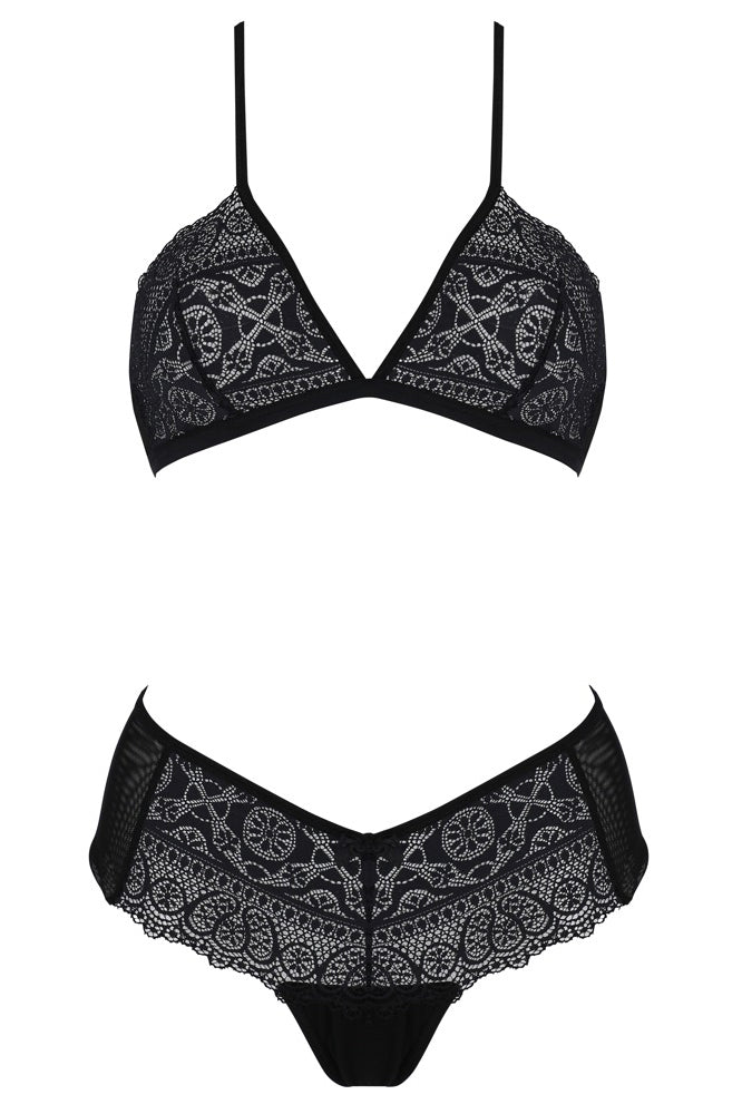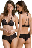 • Features: wireless bra, briefs, stretchy powernet, lace, adjustable straps