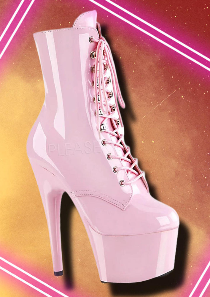 Channel Chic Confidence with Pleaser Pink Patent Stiletto Heel Ankle Boots (ADORE-1020)