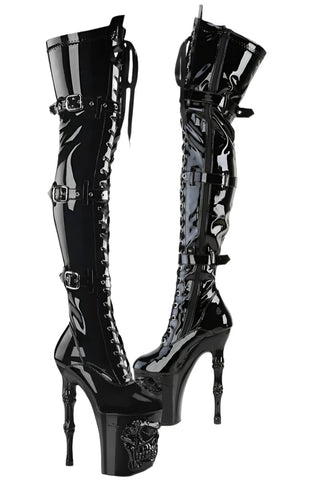 Channel your inner rockstar with Pleaser Rapture Shoes and Boots at Angel Clothing. This electrifying collection features a striking 8-inch finger bone heel and a platform sole for a dramatic elevation of your everyday style. Embrace the darkness with classic black vegan leather or explore bolder colors and materials. Rapture footwear adds a touch of rebellion to any outfit, ideal for goths, punks, and all lovers of edgy alternative fashion. Shop now and ascend to edgy heights with Pleaser Rapture!
