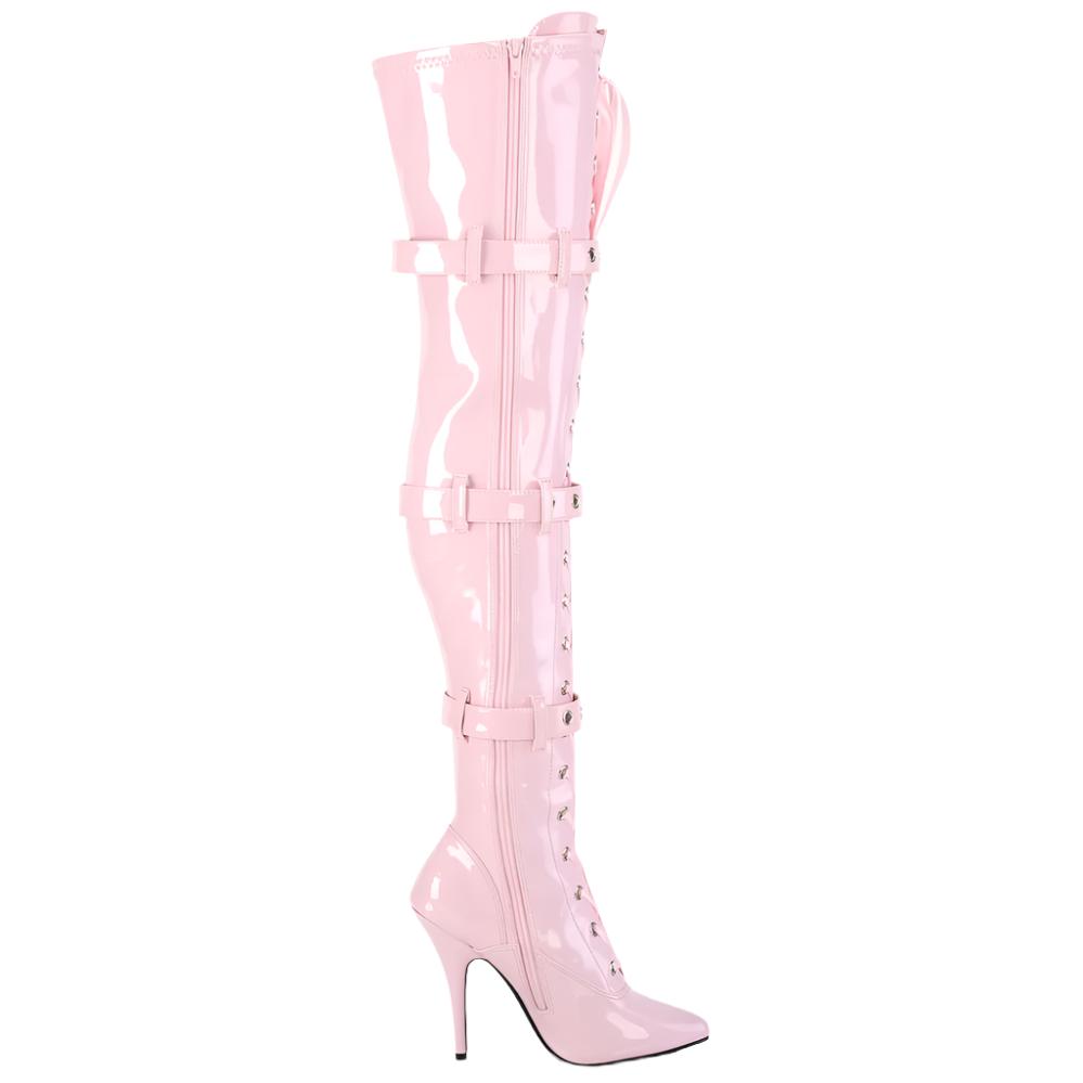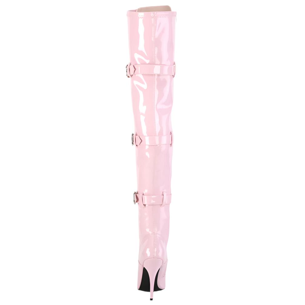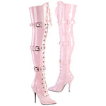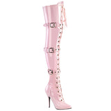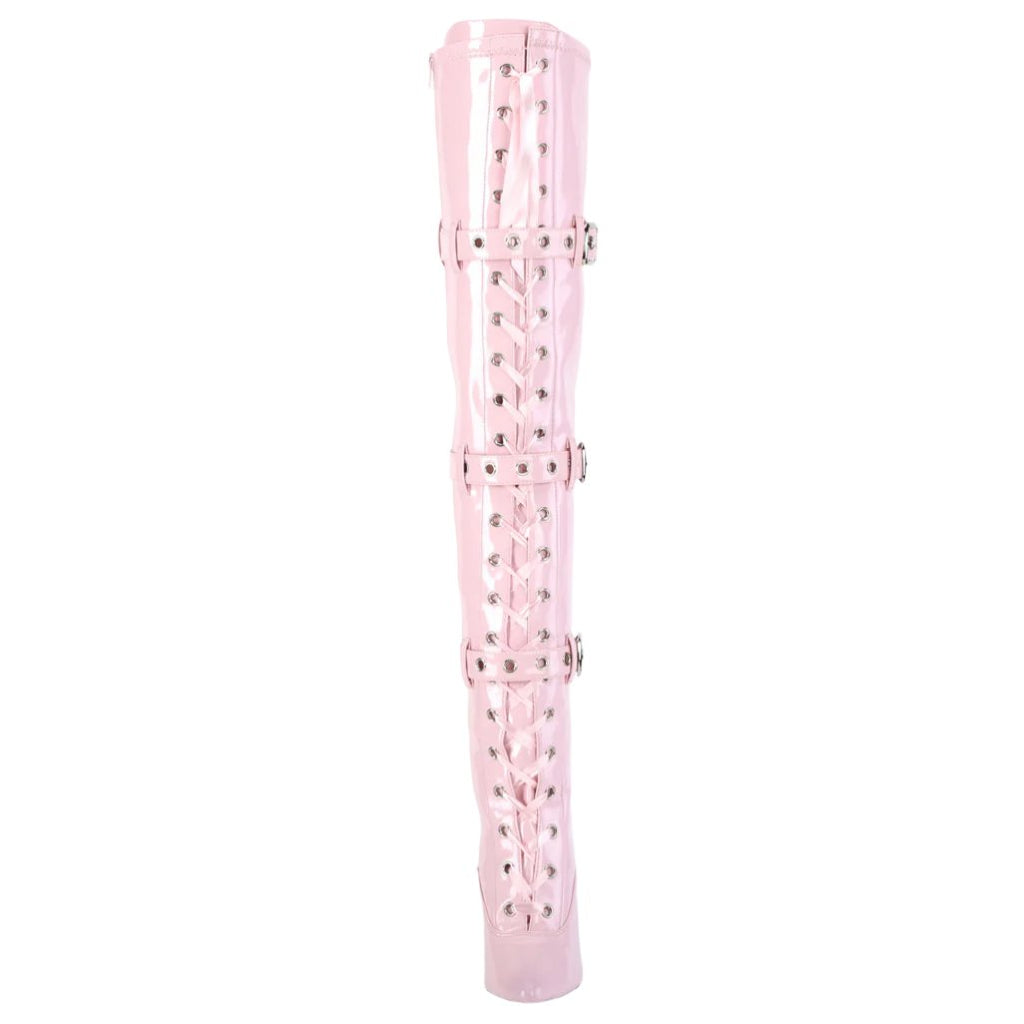 Embrace your inner icon with the undeniably cute and captivating Pleaser Seduce-3028 Baby Pink Thigh-High Boots. These statement shoes boast a soft pink patent finish, a touch of playful flair, and a comfortable fit, making them perfect for adding a touch of sugary spice to any outfit.