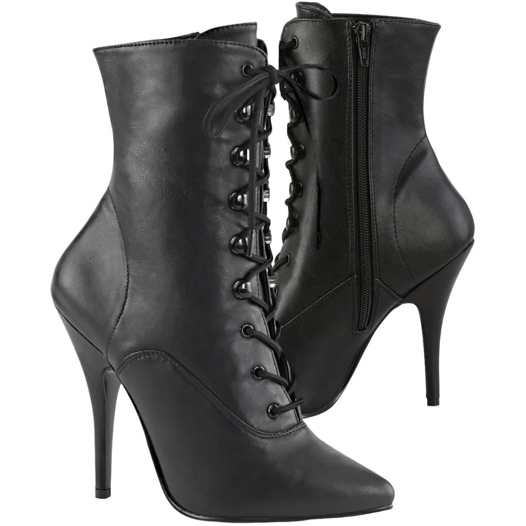 Search Tags: Pleaser Seduce-1020, Ankle Boots, Black Boots, Faux Leather Boots, Stiletto Heels, Lace-Up Boots, Pleaser Shoes, Adult Boots.