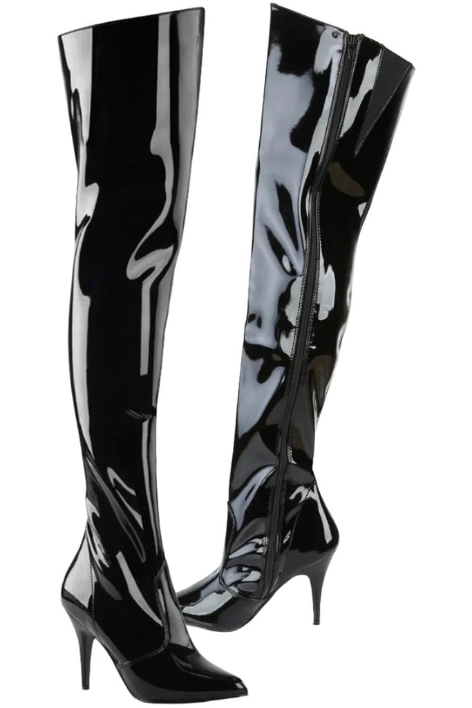 #PleaserShoes #VANITY3010 #ThighHighBoots #BlackPatent #ElasticatedGusset #Glamour #Confidence #VersatileStyle