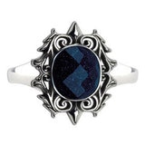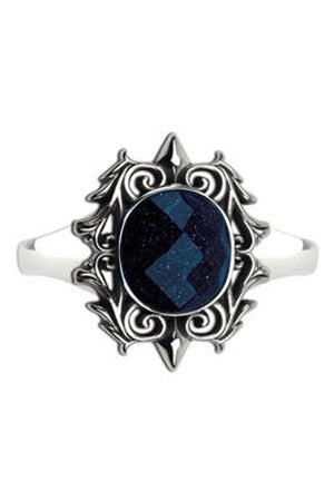Ring with dark blue stone with tiny silver spots, looks like the universe.