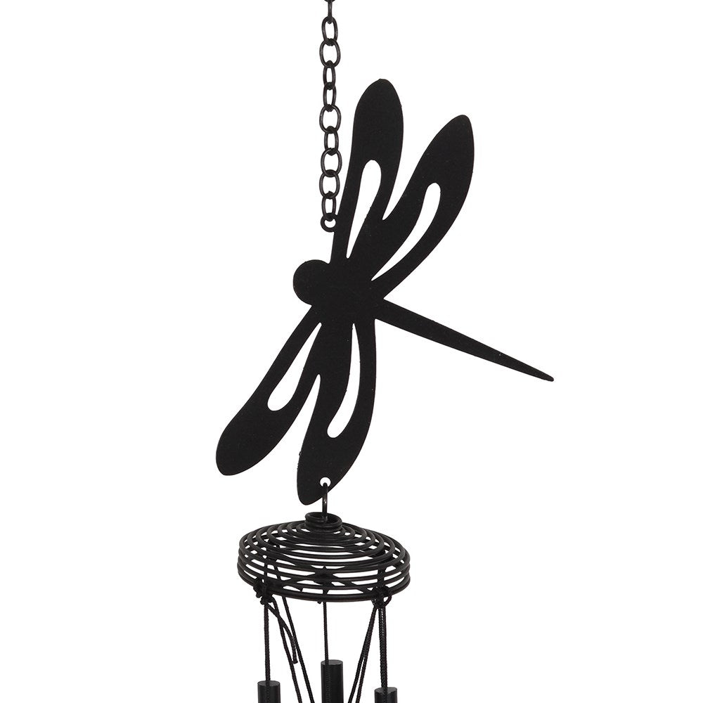 Bring a touch of elegance and whimsy to your outdoor space with the Black Dragonfly Wind Chime. This captivating chime features delicate black dragonfly cut-outs that dance in the wind, creating a mesmerizing display and a soothing melody.