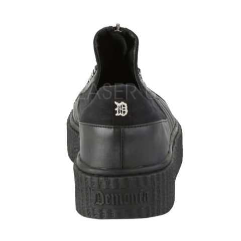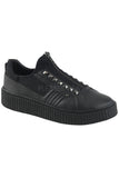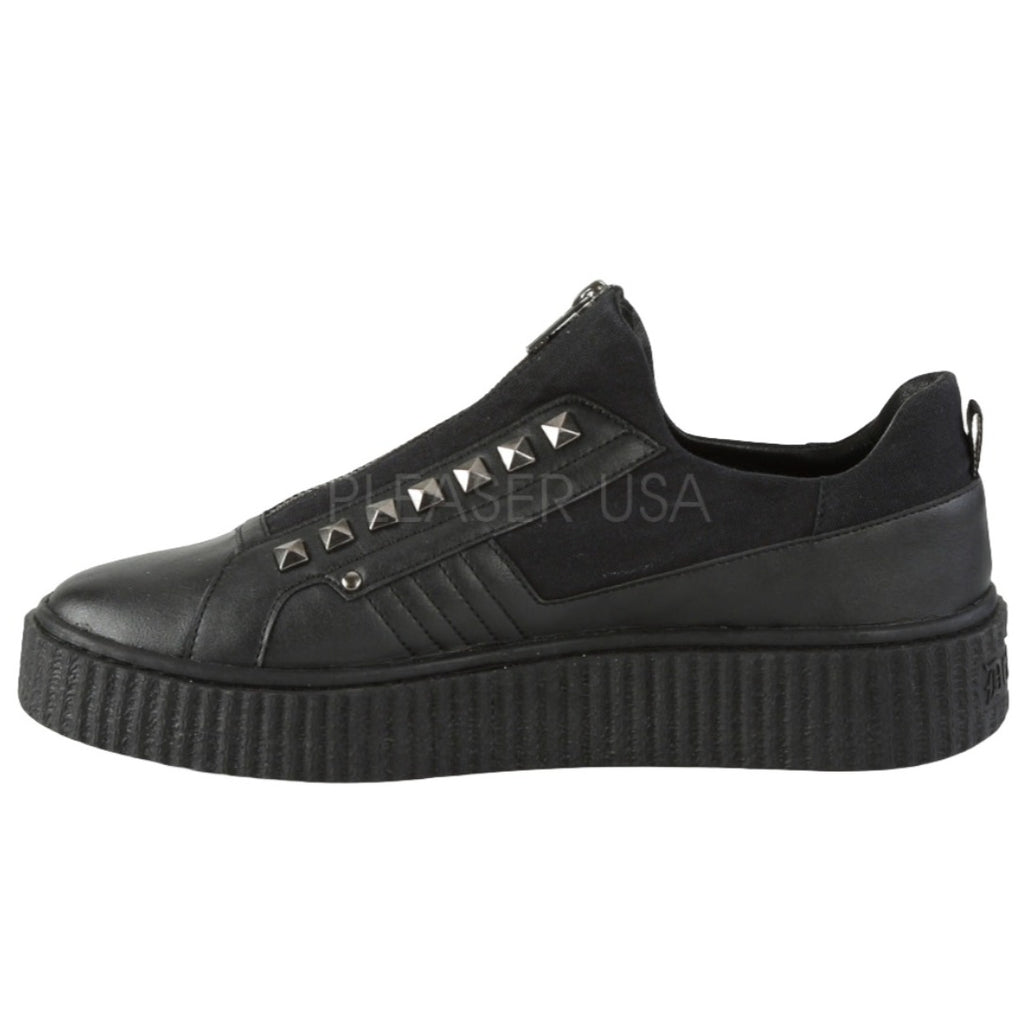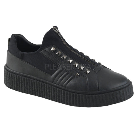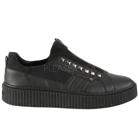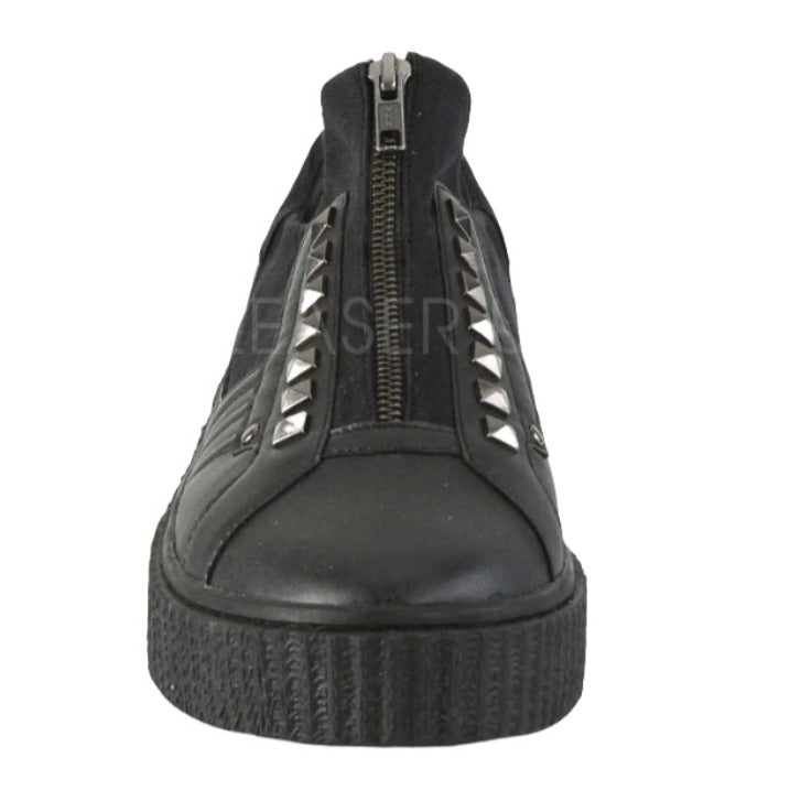1 1/2" (38mm) Platform Rubber Sole Low Top Round Toe Zip Front Creeper Sneaker Featuring Pyramid Stud Details Up the Front.