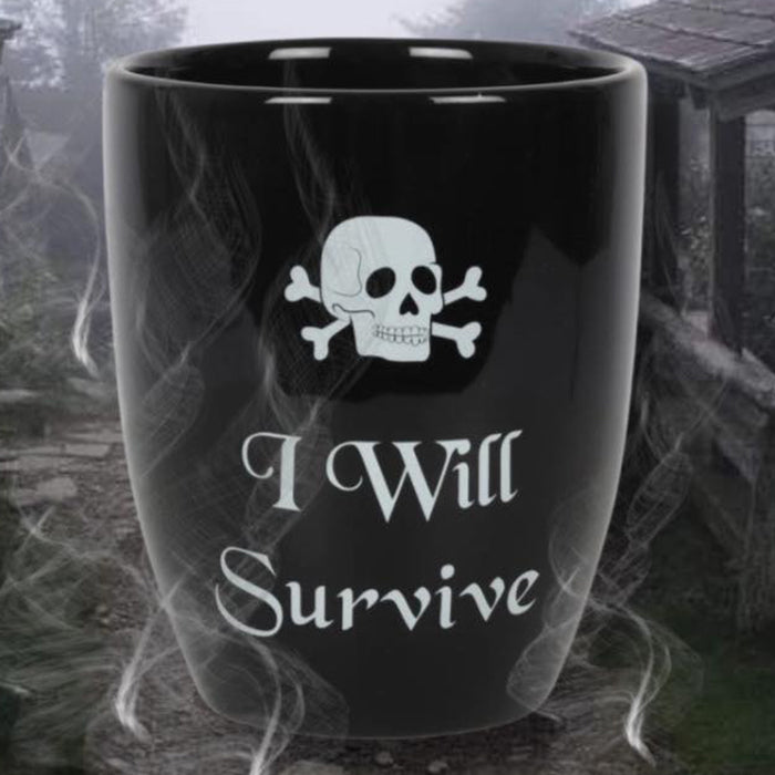 • The bold "I Will Survive" text with a skull and crossbones motif adds a touch of gothic whimsy to any room.