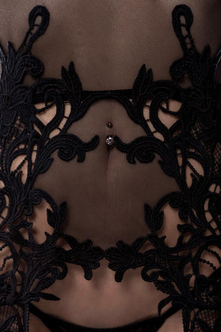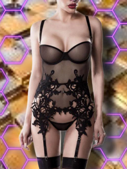 - Effortless Allure: The transparent, elastic mesh fabric creates a captivatingly ethereal look, while the delicate crochet lace adds a touch of romantic elegance.