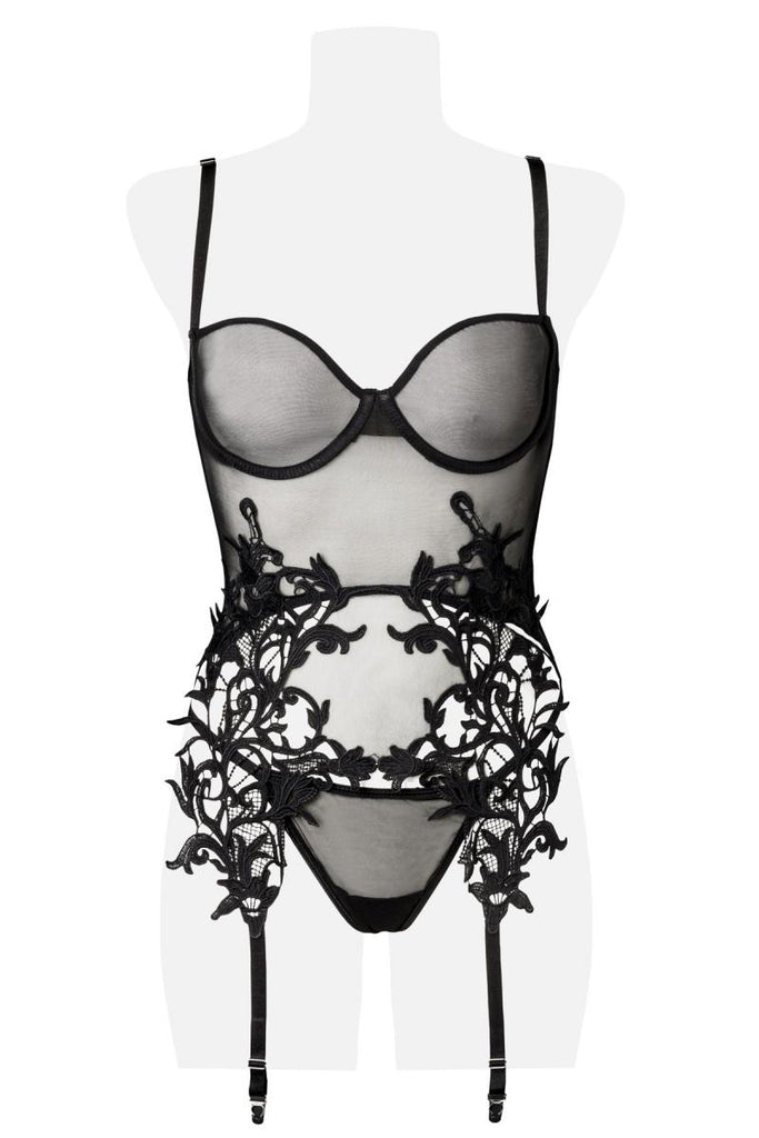 - Design: The set features a captivating negligée with adjustable straps and suspenders, adorned with intricate crochet lace and bra brackets. A matching thong completes the look.