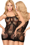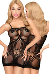Are you ready for magical moments in the bedroom? This sexy mini dress in wicked black is tight thanks to the flexible materials and creates a wonderful hourglass silhouette. Thanks to the hole and net pattern, the dress has an elegant touch - a front cut-out completes the elegant look. In addition to the spaghetti straps, the square neckline ensures a lovely cleavage.