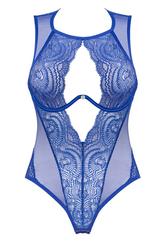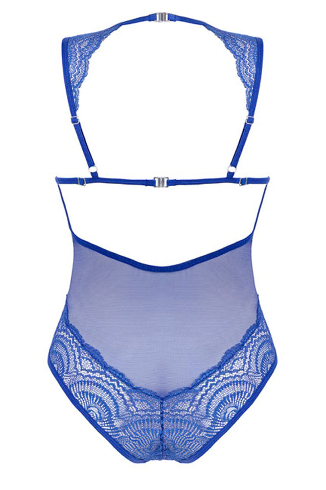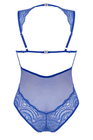 A Daring and Elegant Design: This body is crafted from a delicate mix of lace and powernet, providing a beautiful and intricate texture. The royal blue color is both rich and sophisticated, while the low-cut cleavage area and almost backless design ensure a captivating look.