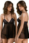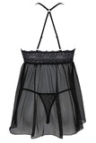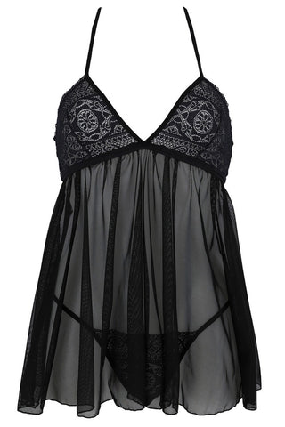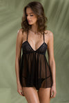 The Kerria Chemise and matching string offer a perfect blend of comfort and sophistication. The light and airy fabric, combined with the delicate lace accents, create a truly enchanting piece. The chemise features an integrated lace bra with adjustable criss-cross straps for a personalized fit. The matching string completes the ensemble, adding a touch of playful seduction.