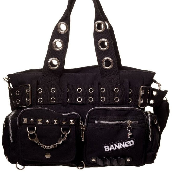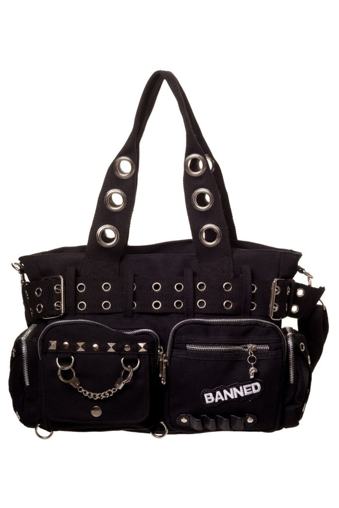 Banned Black Bag with Handcuff and Eyelet Detail.