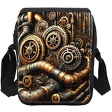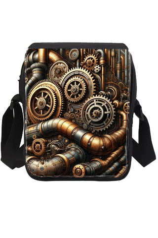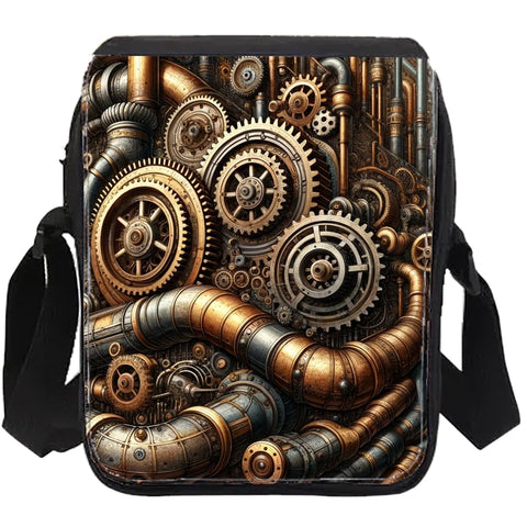 This unique bag is adorned with a captivating design of steampunk cogs and pipes. The detailed print captures the essence of a functional, old-world machine, showcasing a complex arrangement of gears and metallic pipes that turn a simple accessory into a work of industrial art. This bag is a bold statement piece, ideal for adding a touch of sophisticated, engineered charm to your outfit for festivals, conventions, or everyday wear.