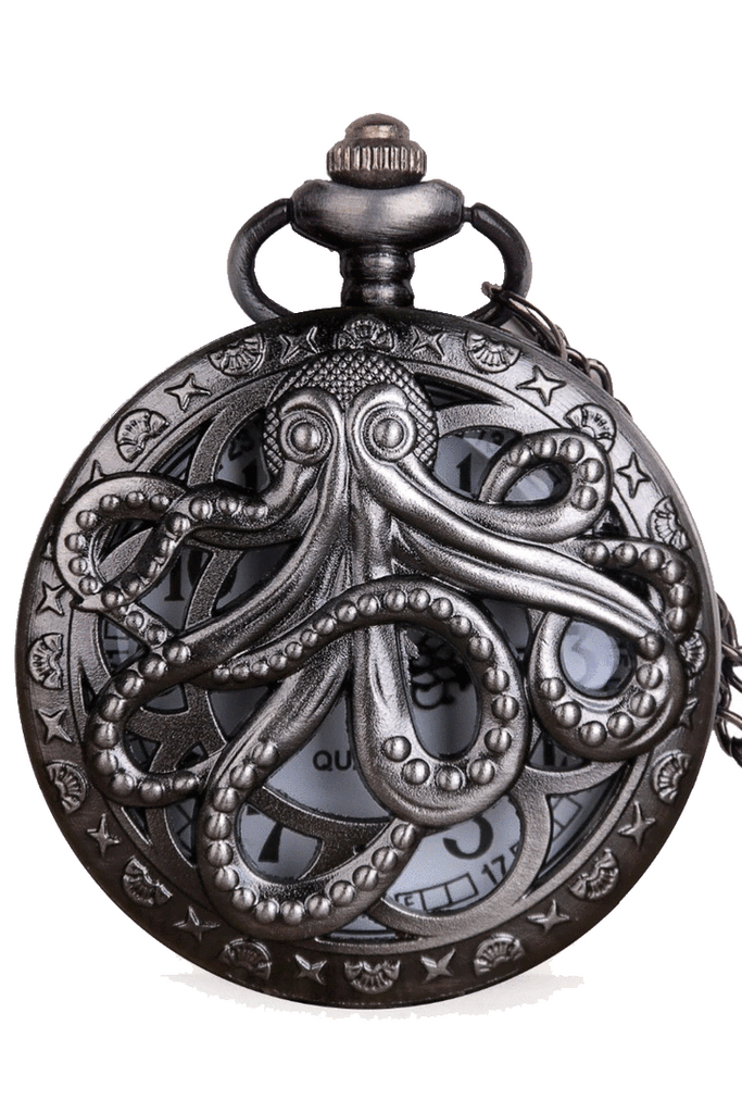 Steampunk Gunmetal Octopus Pocket Watch / Necklace