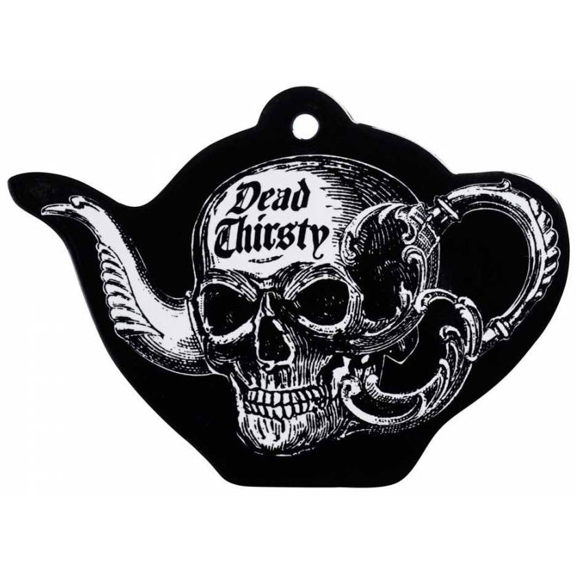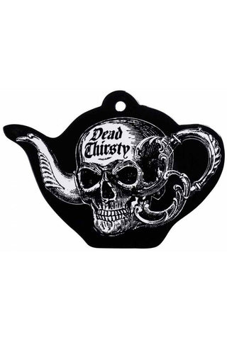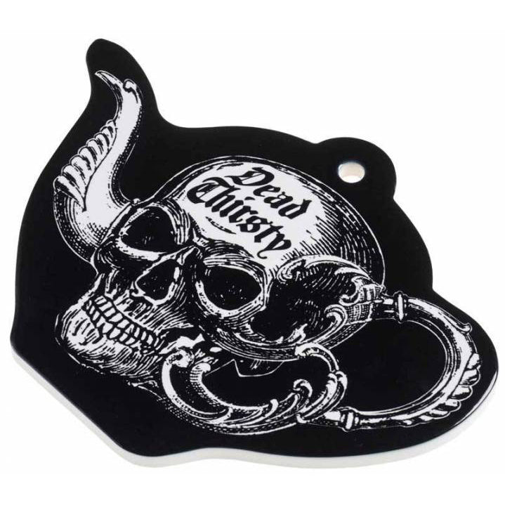 A fun and functional teapot shaped coaster baring the 'Dead Thirsty' baroque skull design. A darkly beautiful addition to any kitchen. This piece can be used as a coaster for mugs, pans, teapots and more! What a wonderful gift it would make for anyone whose 'Dead Thirsty' This unique trivet / giant coaster is designed by Alchemy and forms part of the high quality ceramic homewares collection.