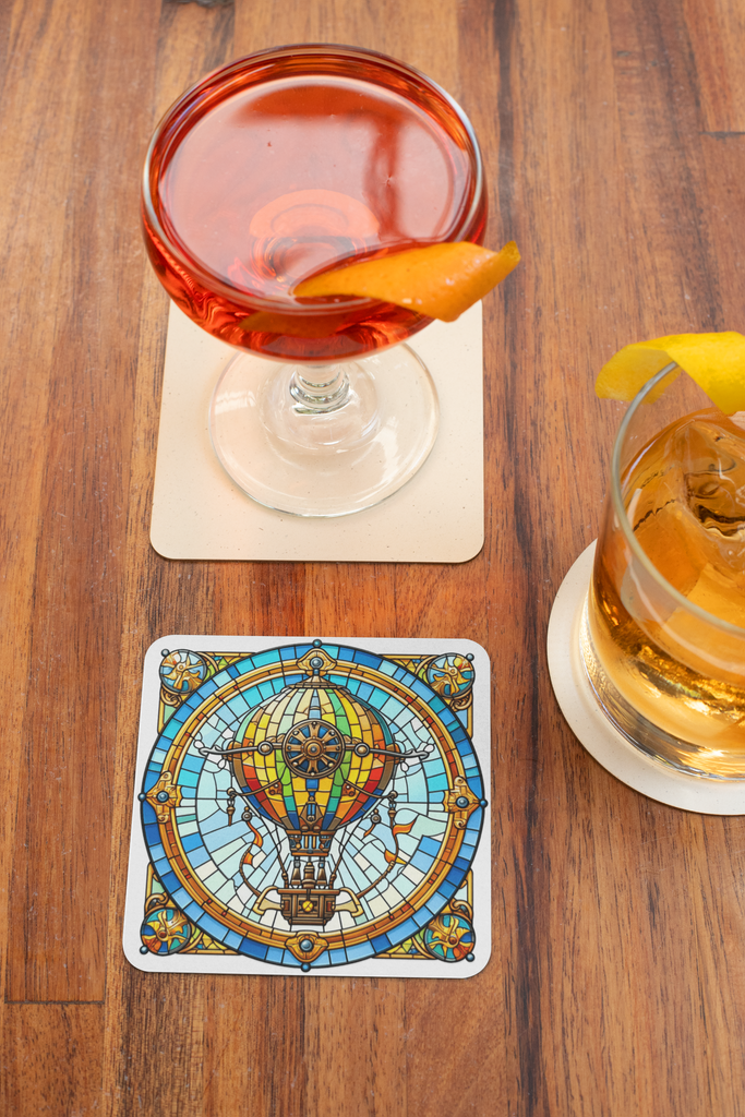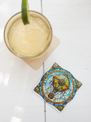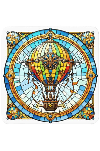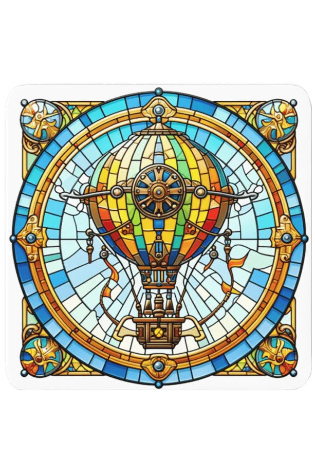 Cork Backed Steampunk Classic Style Hot Air Balloon. Air Balloon Stained Glass Window.