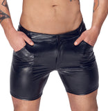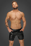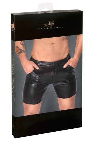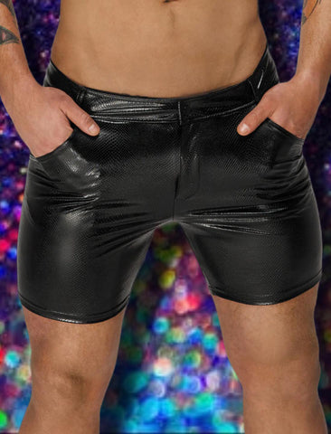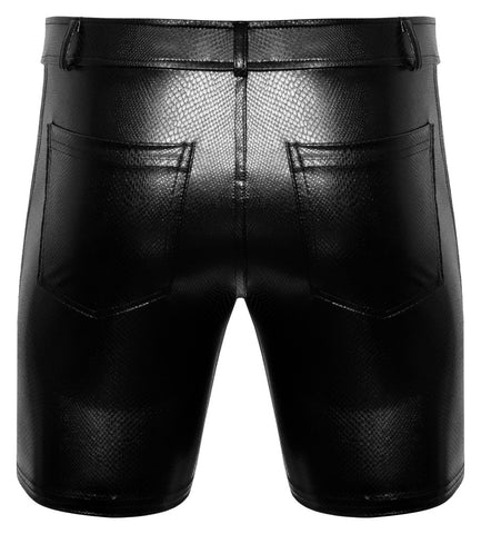 Noir Handmade Mid Length Shorts with Snake Pattern Wetlook with Back Pockets.