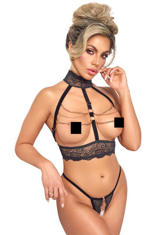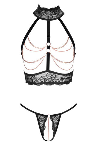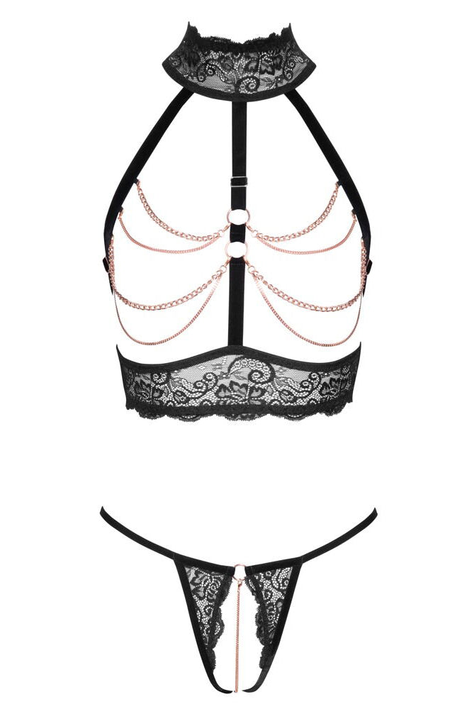 Abierta Fina Rose Gold Chain Lingerie Set: A Bold Statement in Black