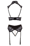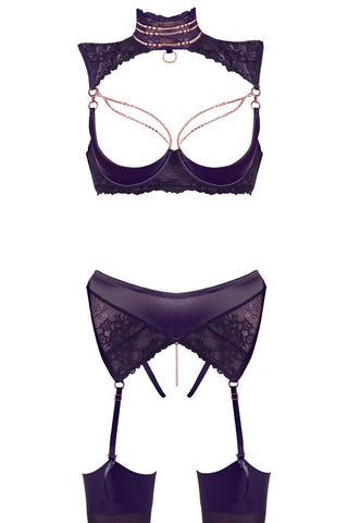 This isn't just a lingerie set; it's a statement piece designed to make you feel beautiful and confident. Our Abierta Fina Shelf Bra Set is a daring and elegant ensemble that combines a slightly padded, underwired shelf bra with a matching crotchless string with suspender straps. We've expertly crafted this set from a beautiful, soft lace that feels incredible against your skin.