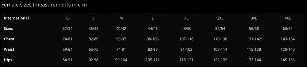 | Sizes | 36/38 | 40/42 | 44/46 | 48/50 |