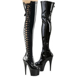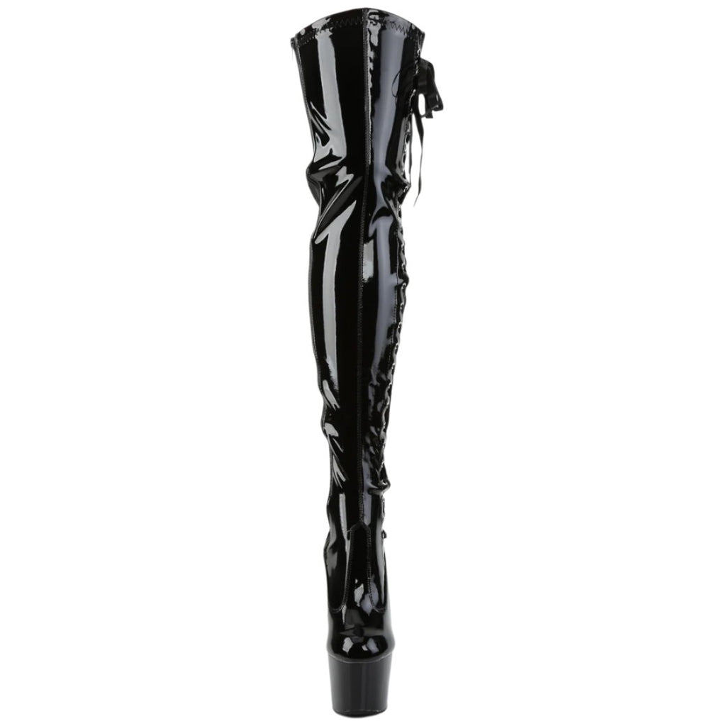 Pleaser Adore-3050 Black Stretch Patent Thigh Boots