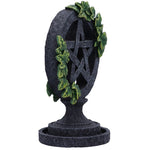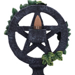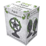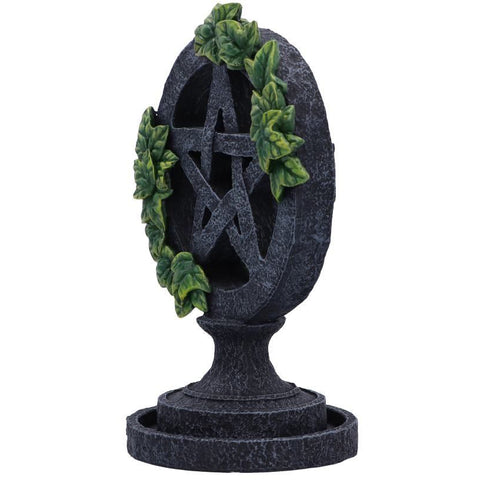 This Aged Pentagram Backflow Incense Burner has a pentagram symbol which sits on a round base with green ivy entwined around. A small square cube sits at the back of the star symbol which is perfect for placing your favourite backflow incense cones. Cast in the finest resin before being expertly hand-painted, this Aged Pentagram Backflow Incense Burner is perfect for any wiccan lover.